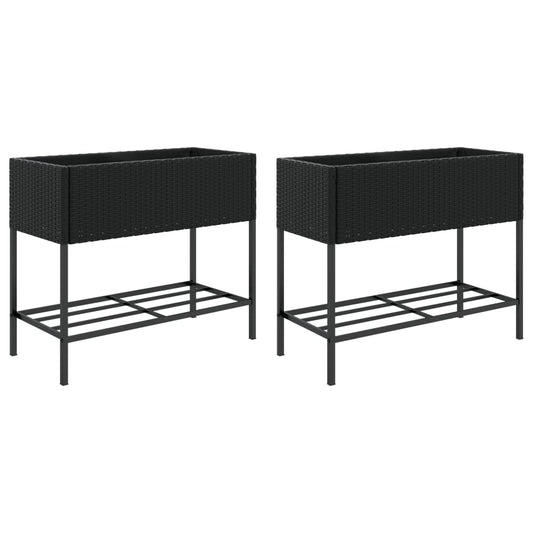 Jardiniere de grădină cu raft 2 buc. negru 90x40x75cm poliratan