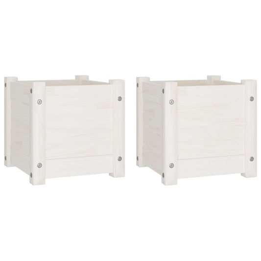 Jardiniere de grădină, 2 buc., alb, 31x31x31 cm, lemn masiv pin