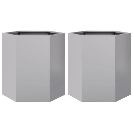 Jardiniere grădină 2 buc. 46x40x45cm oțel inoxidabil hexagonală