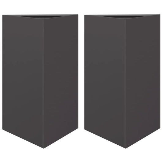 Jardiniere grădină, 2 buc., negru, 30x26x75 cm, oțel, triunghi