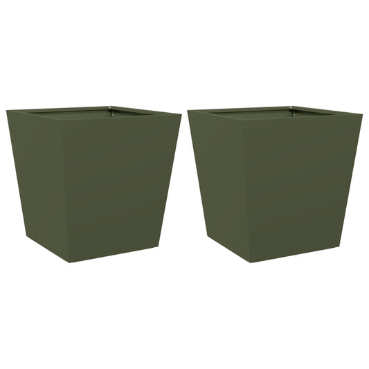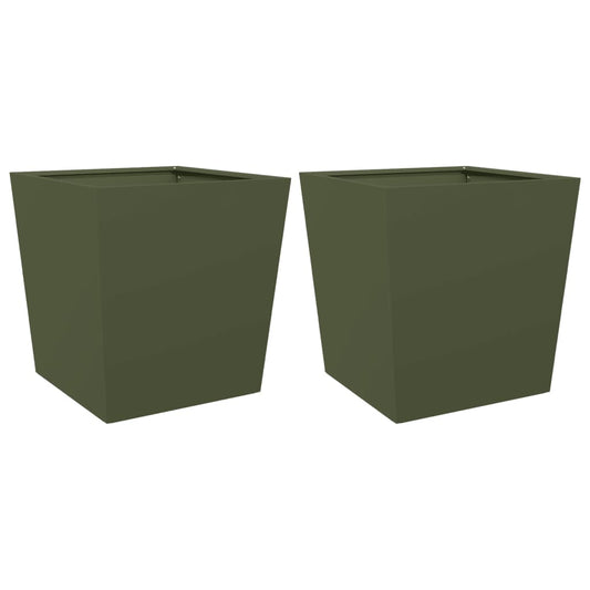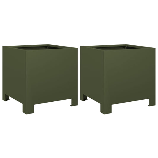 Jardiniere grădină, 2 buc., verde măsliniu, 40x40x40 cm, oțel