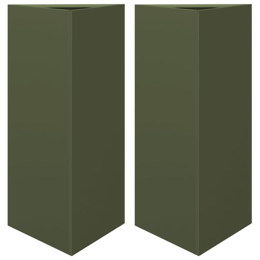 Jardiniere grădină, 2 buc., verde, 40x34,5x70cm, oțel, triunghi