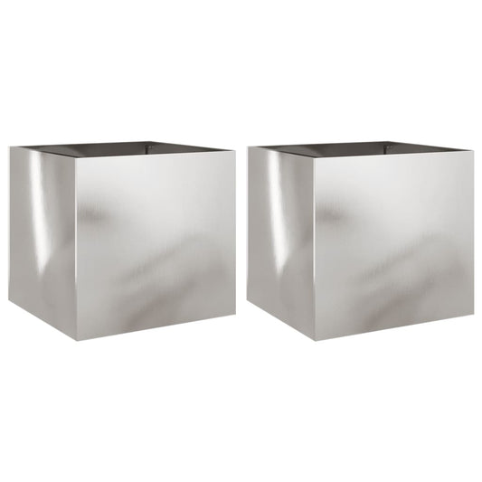 Jardiniere, 2 buc., argintiu 42x40x39 cm, oțel inoxidabil