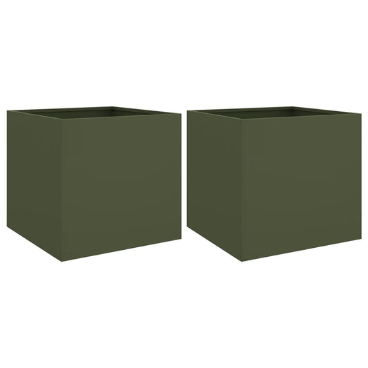Jardiniere, 2 buc., verde măsliniu, 49x47x46 cm, oțel