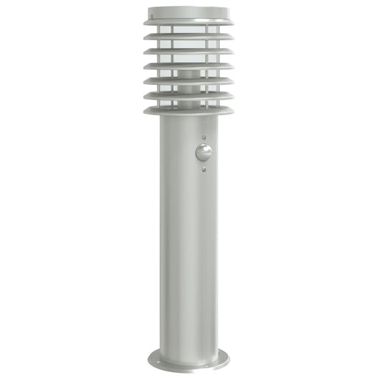 Lampă exterioară de podea cu senzor argintiu, 60 cm, oțel inox