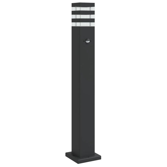 Lampă exterioară de podea cu senzor, negru, 110 cm, oțel inox