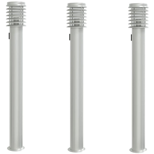 Lămpi de podea de exterior 3 buc argintiu 110cm oțel inoxidabil