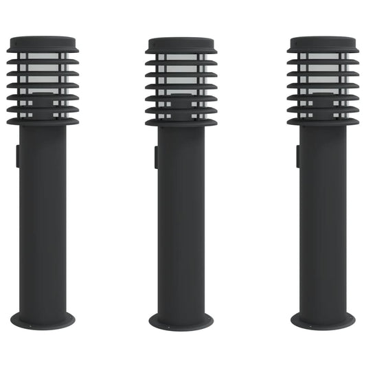 Lămpi de podea de exterior 3 buc negru 60 cm oțel inoxidabil