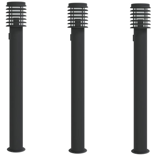 Lămpi de podea de exterior 3 buc. negru 100 cm oțel inoxidabil
