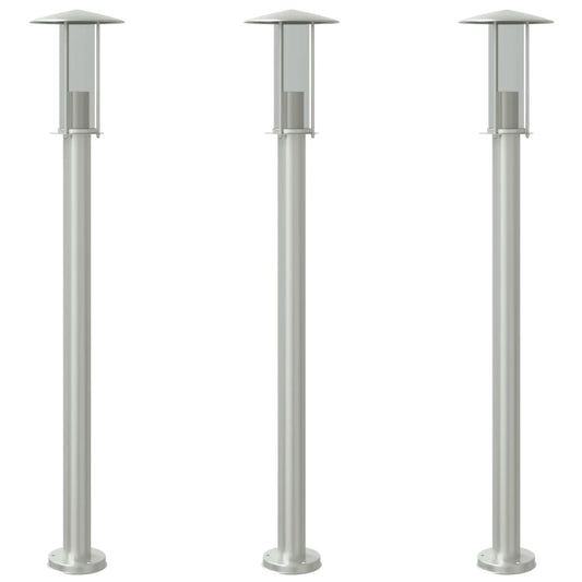 Lămpi exterioare de podea 3 buc argintiu 100 cm oțel inoxidabil
