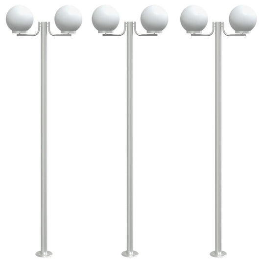 Lămpi exterioare de podea 3 buc argintiu 215 cm oțel inoxidabil