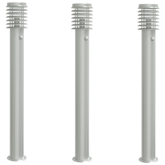 Lămpi exterioare de podea senzor 3 buc argintiu 110cm oțel inox