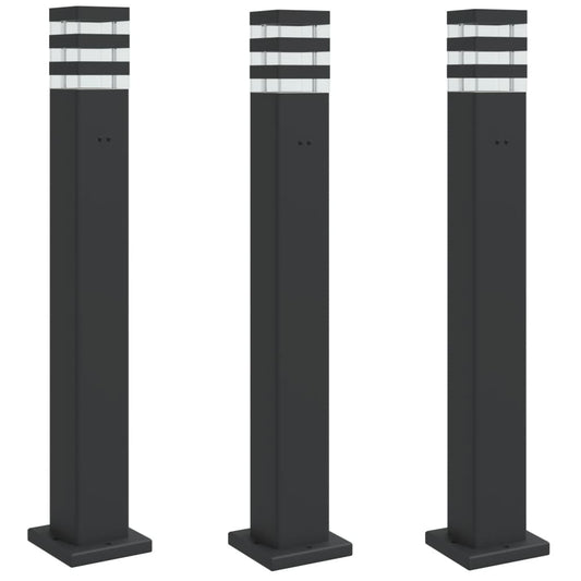Lămpi exterioare de podea cu priză, 3 buc. negru 80 cm aluminiu
