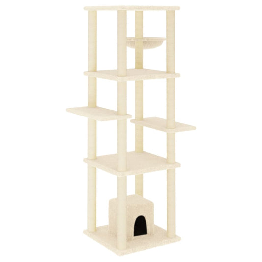 Ansamblu de pisici cu stâlpi din funie de sisal, crem, 162 cm