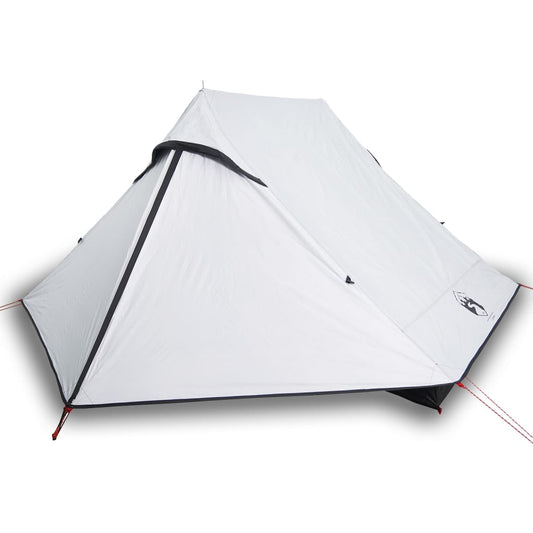 Cort camping, 2 persoane, alb, țesătură opacă, impermeabil