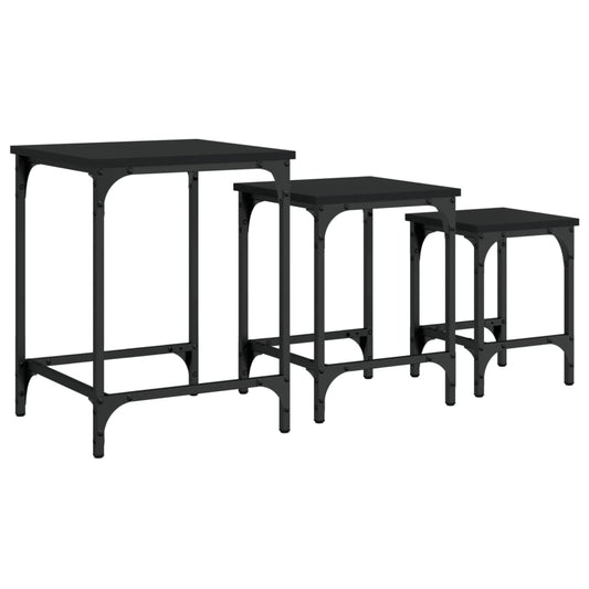 Mese suprapuse de cafea, 3 buc, negru, lemn prelucrat