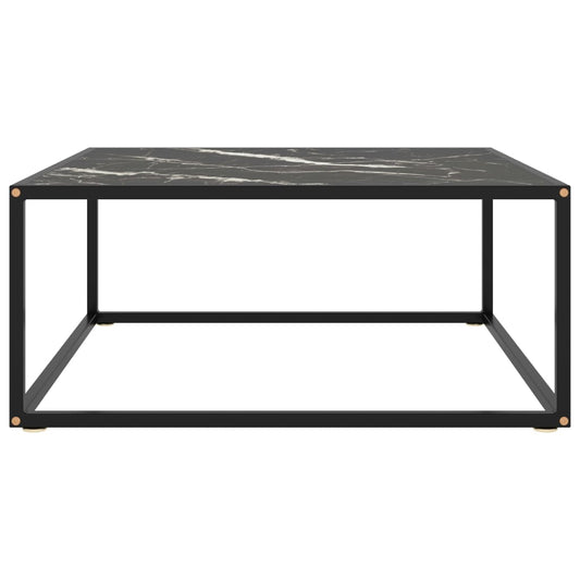 Măsuță de cafea, negru cu sticlă neagră marmorată, 80x80x35 cm
