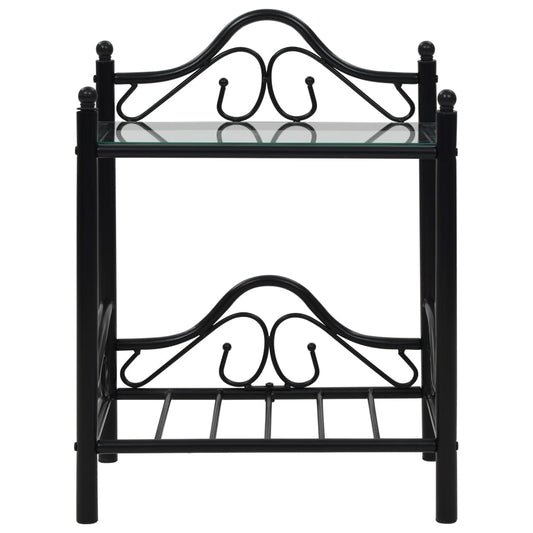 Noptieră, oțel și sticlă securizată, 45 x 30,5 x 60 cm, negru