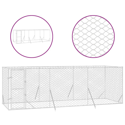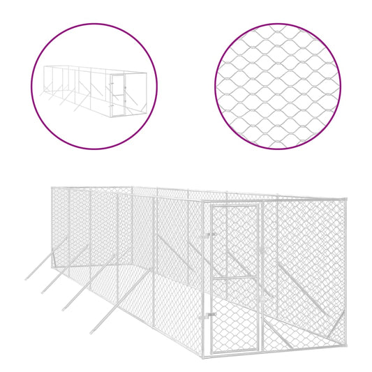Padoc de exterior pentru câini argintiu 8x4x2 m oțel galvanizat