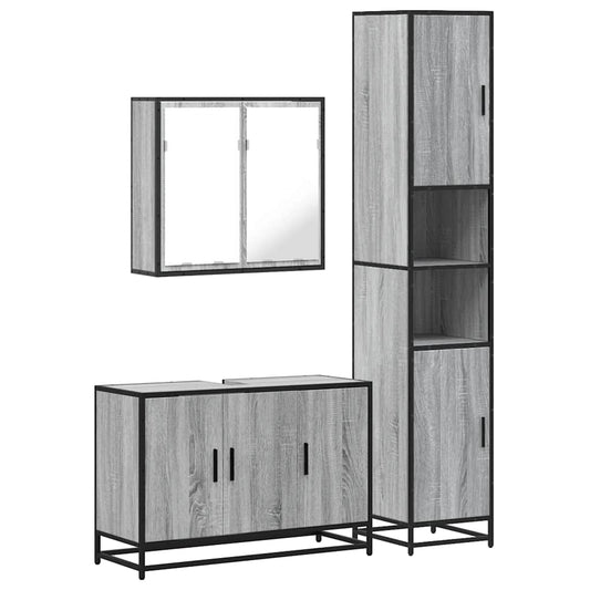 Set mobilier de baie, 3 piese, gri sonoma, lemn prelucrat
