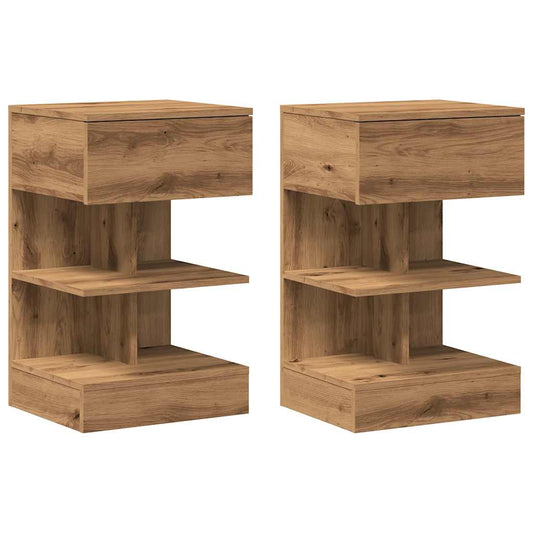 Noptiere, 2 buc., stejar artizanal, 40x35x65 cm, lemn prelucrat