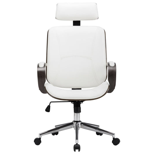 Scaun de birou rotativ, alb, piele ecologică și lemn curbat