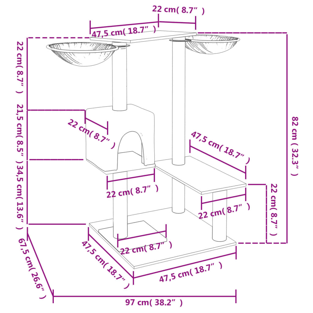 Ansamblu de pisici cu stâlpi de zgâriat, crem, 82 cm