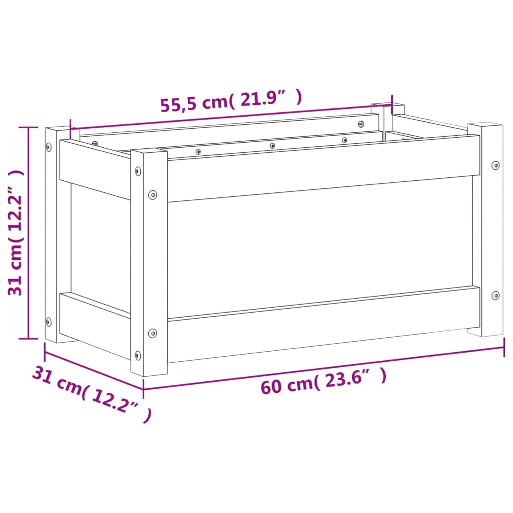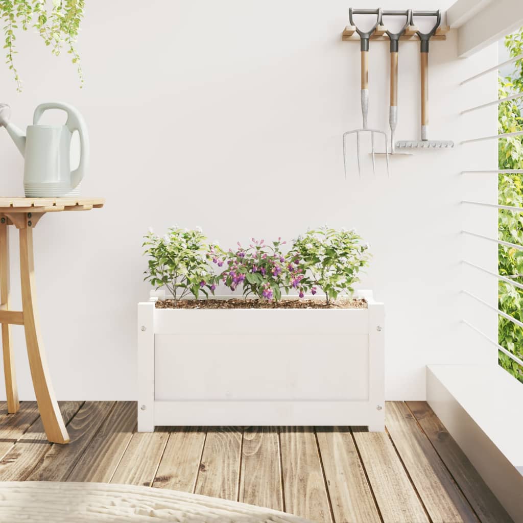 Jardinieră de grădină, alb, 60x31x31 cm, lemn masiv de pin