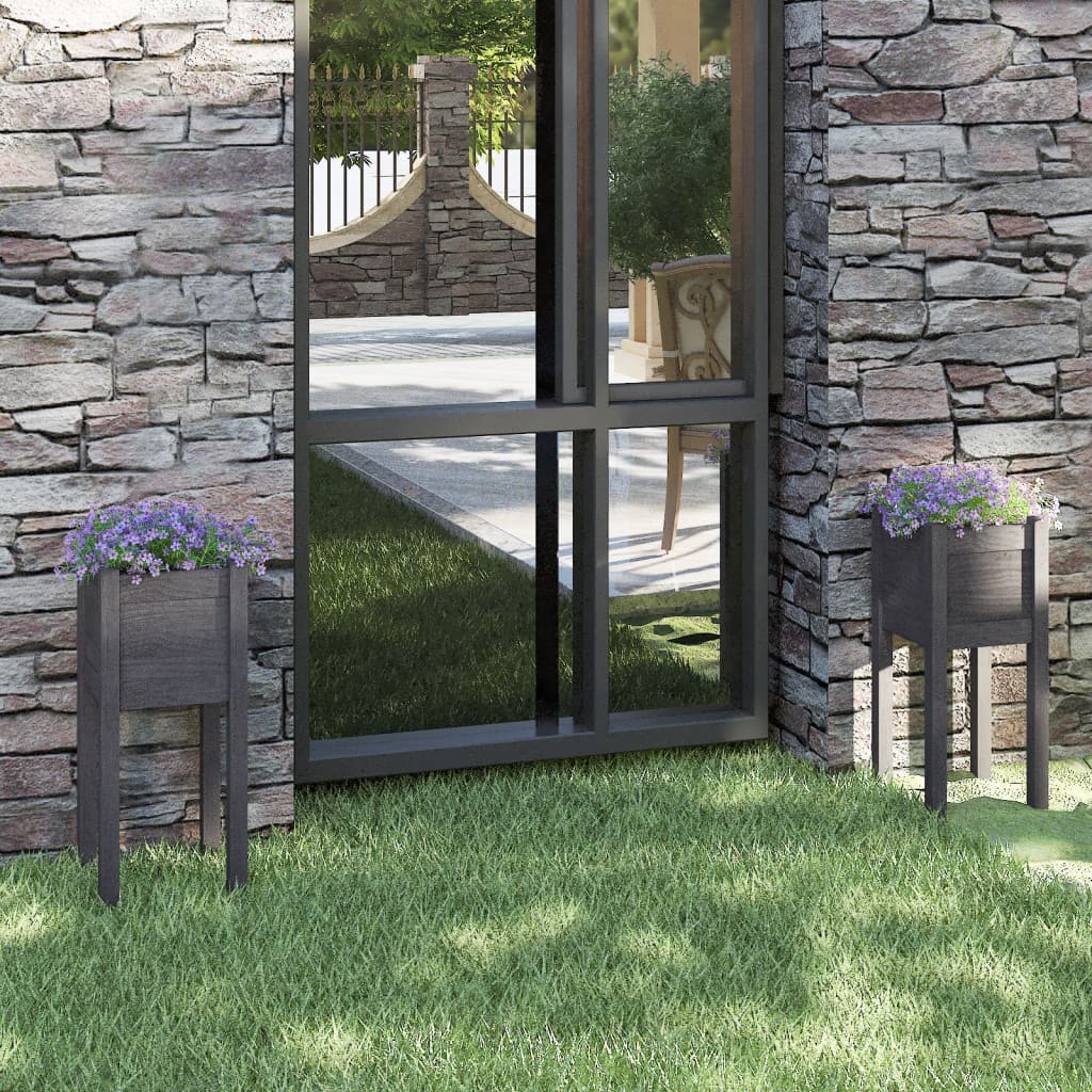 Jardiniere de grădină, 2 buc., gri, 31x31x70 cm, lemn masiv pin