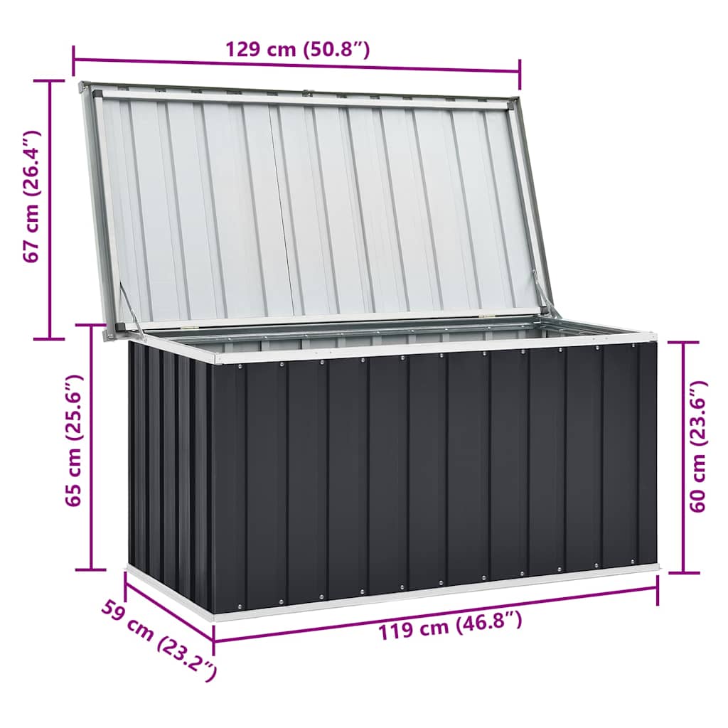 Ladă de depozitare pentru grădină, antracit, 129 x 67 x 65 cm