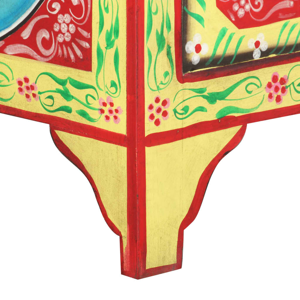 Această noptieră frumoasă din lemn, împodobită cu decorațiuni bogate, pictate manual, va aduce un plus atrăgător dormitorului dvs. cu designul său colorat.